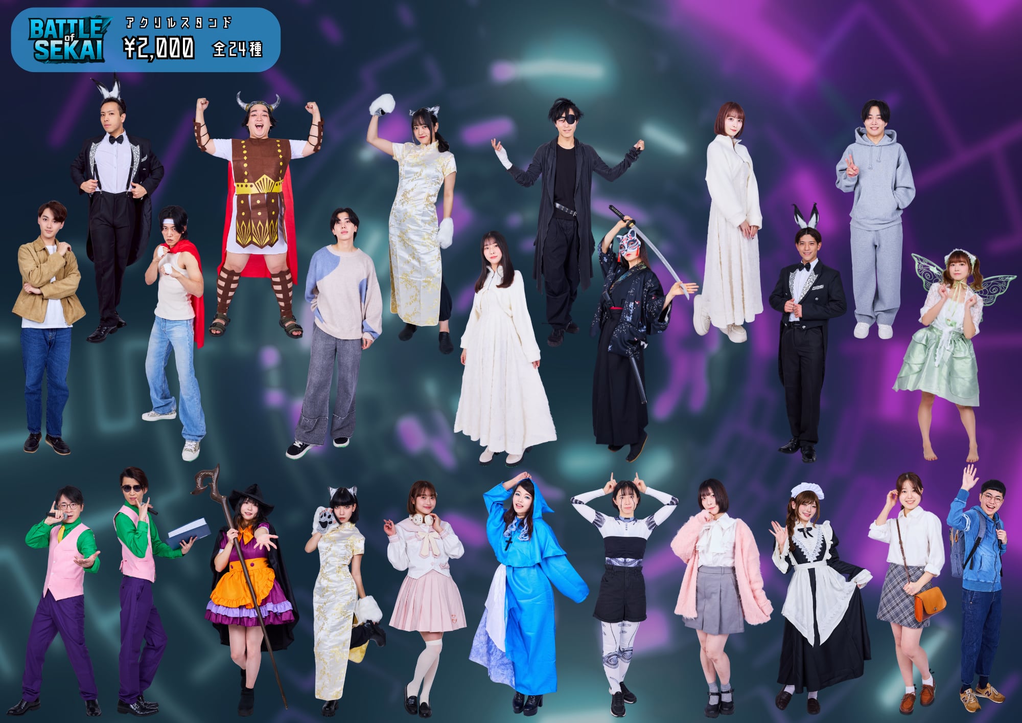全24人のキャラクターを、約10cmのアクリルスタンドでお迎えできます。